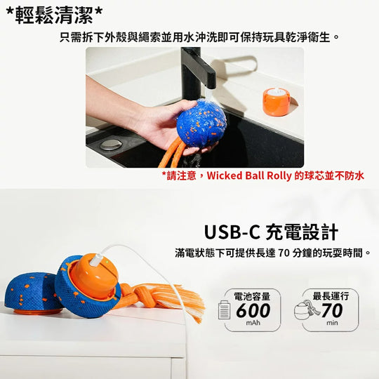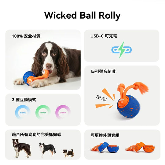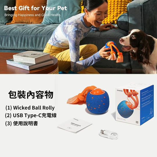商品描述👍美國亞馬遜寵物玩具銷售排行榜銷售破萬顆👍3種互動玩法👍E-TPU 100%材質安全👍內建狗吠聲,吸引注意👍保固1年-【商品規格】品牌:Cheerble®品名:狗狗智慧瘋狂互動球(Wicked Ball Rolly)型號:CWQ07重量:220g顏色:藍色、橘色商品尺寸:8x8x8.8cm (長x寬x高)商品包裝尺寸:9x9x11cm (長x寬x高)適用:大中小型犬通用材質:E-TPC、PC、混紡保固:非人為因素之損壞,原廠保固一年內容物:USB Type-C 充電線, 瘋狂互動球*1顆, 使用者手冊原價 $980.00原價 $980.00 -