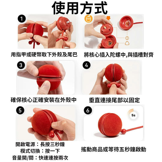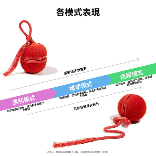商品描述👍球體滾動、陀螺旋轉,換殼換玩法👍3種模式、6種互動玩法👍炫彩燈光、鳥叫聲、聲光互動👍絨毛球體好抓好玩👍保固1年-【商品規格】品牌:Cheerble®品名:二合一瘋狂逗貓球Duo2型號:CWJ04重量:110g商品尺寸:滾球型態5x5x6.7cm (長x寬x高)、陀螺型態5x5x7cm (長x寬x高)商品包裝尺寸:7x7x12cm (長x寬x高)材質:ABS、TPU、PC、合成纖維適用:小型貓犬保固:非人為因素之損壞,原廠保固一年內容物:USB Type-C 充電線*1、逗貓球*1、使用手冊*1、收納袋*1、陀螺外殼*1原價 $880.00原價 $880.00 -