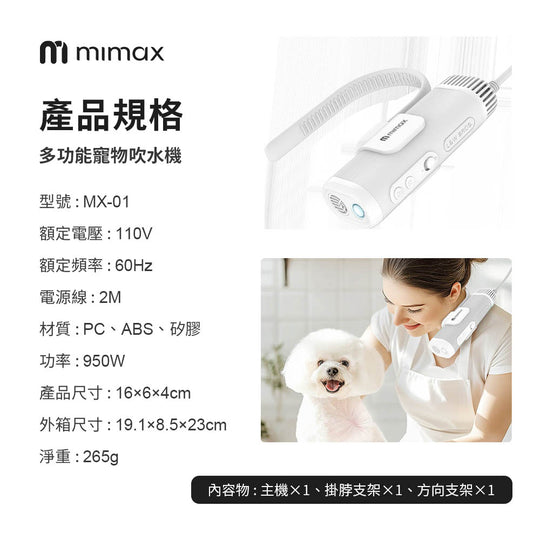 mimax米覓 掛脖吹水機 寵物吹水機 寵物吹風機(僅265g 3億負離子 寵物烘乾 手持 支架 掛脖 多用)