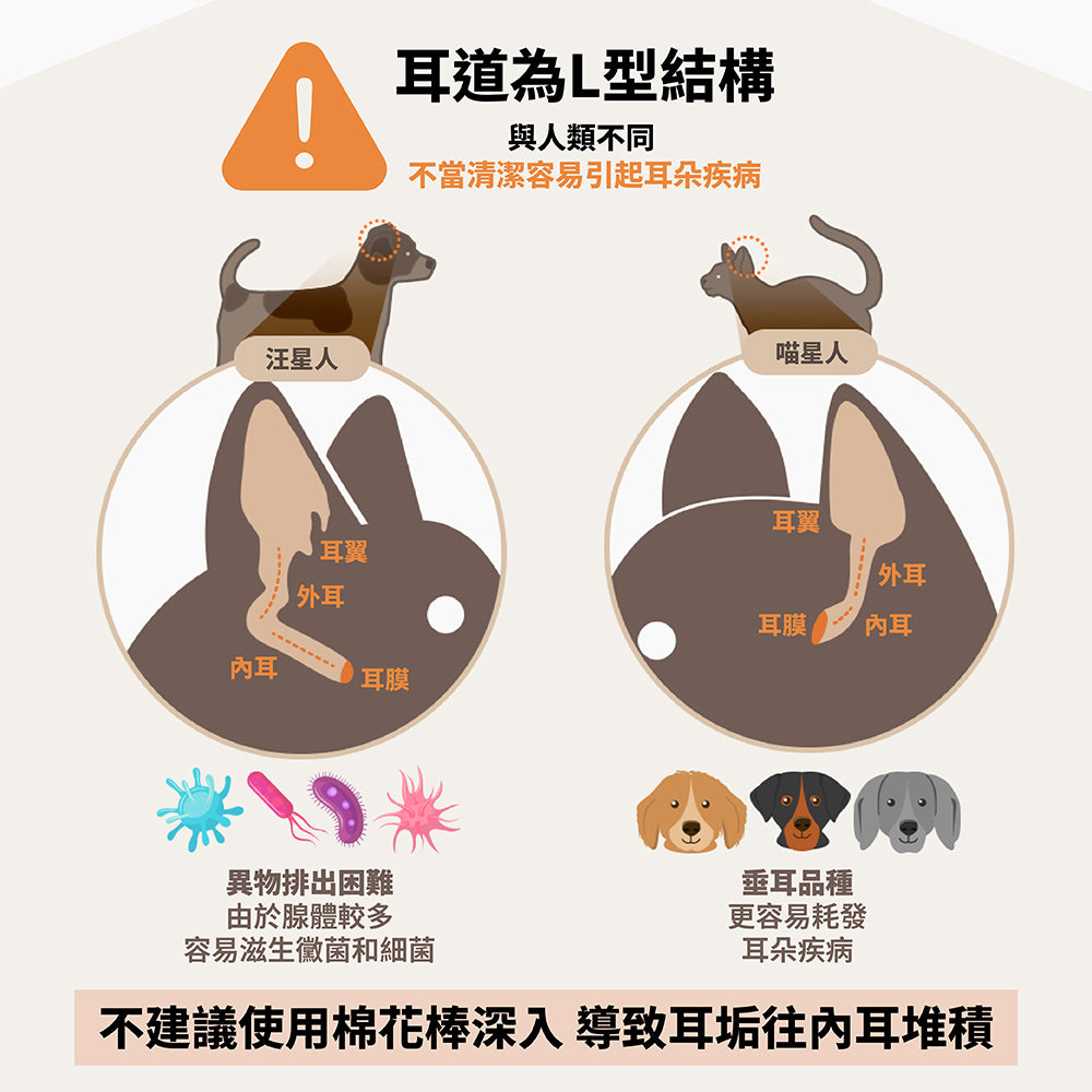 A:不必使用專為寵物設計的棉花棒或化妝棉,您也可以使用普通的化妝棉。然而,寵物耳朵內部的皮膚非常薄,容易受傷,需小心清潔。