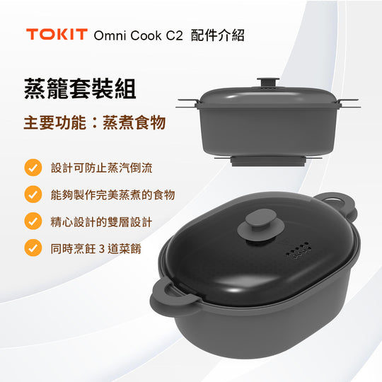 TOKIT廚機 多功能AI聯網料理機配件組(蒸籠組+刀片罩+替換鍋塞)台灣公司貨